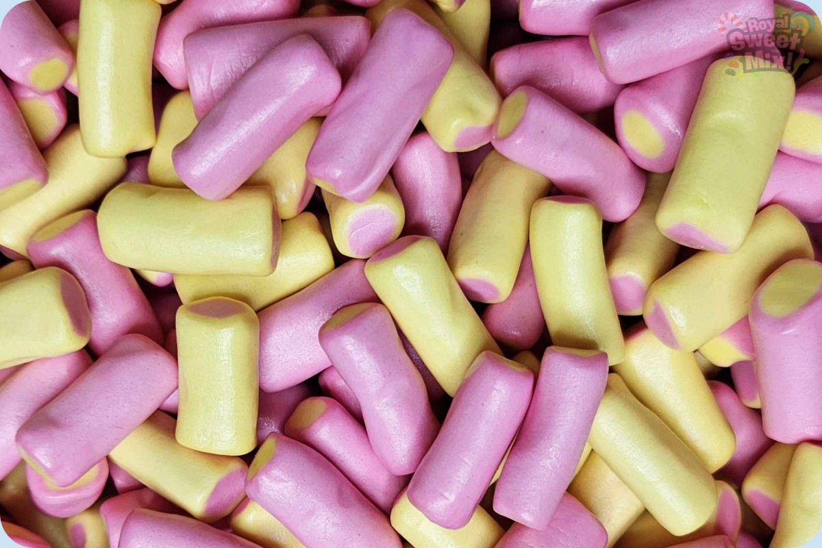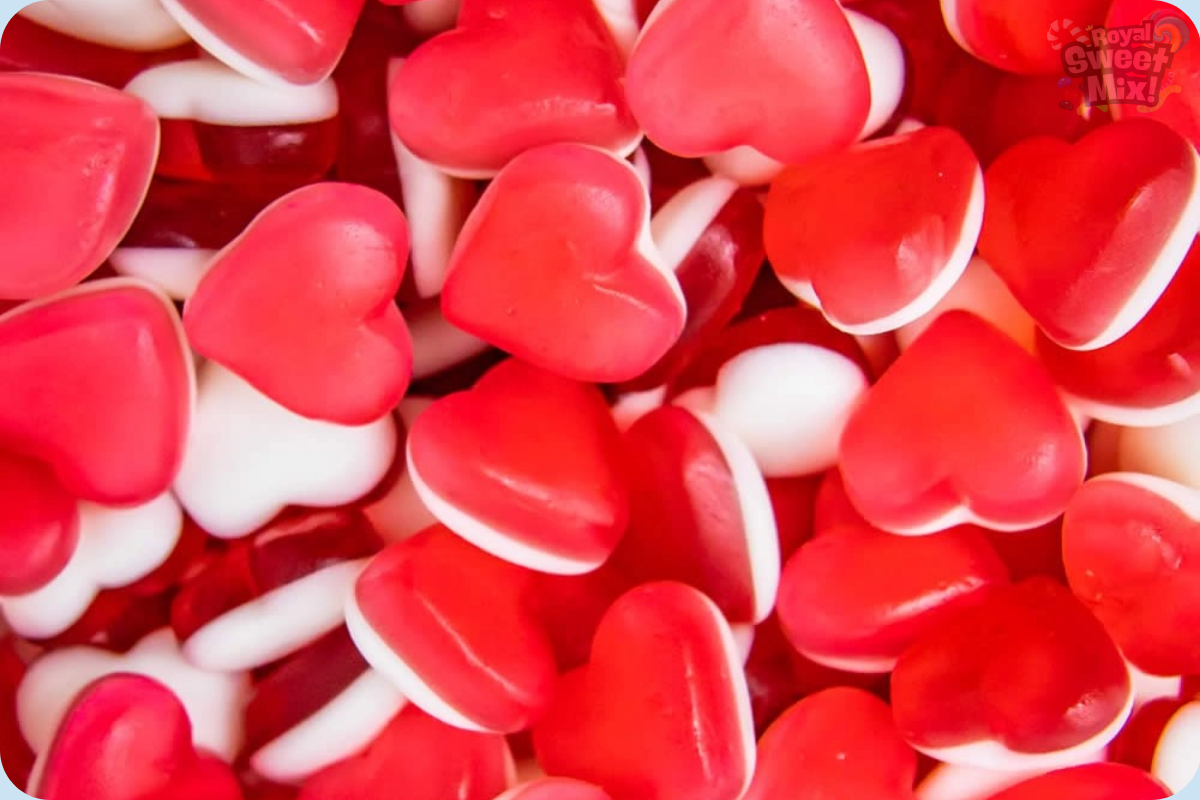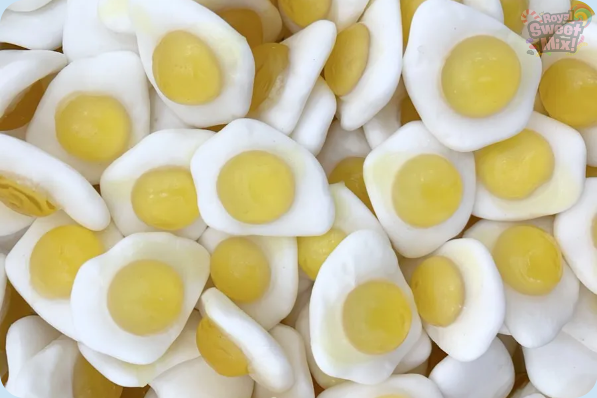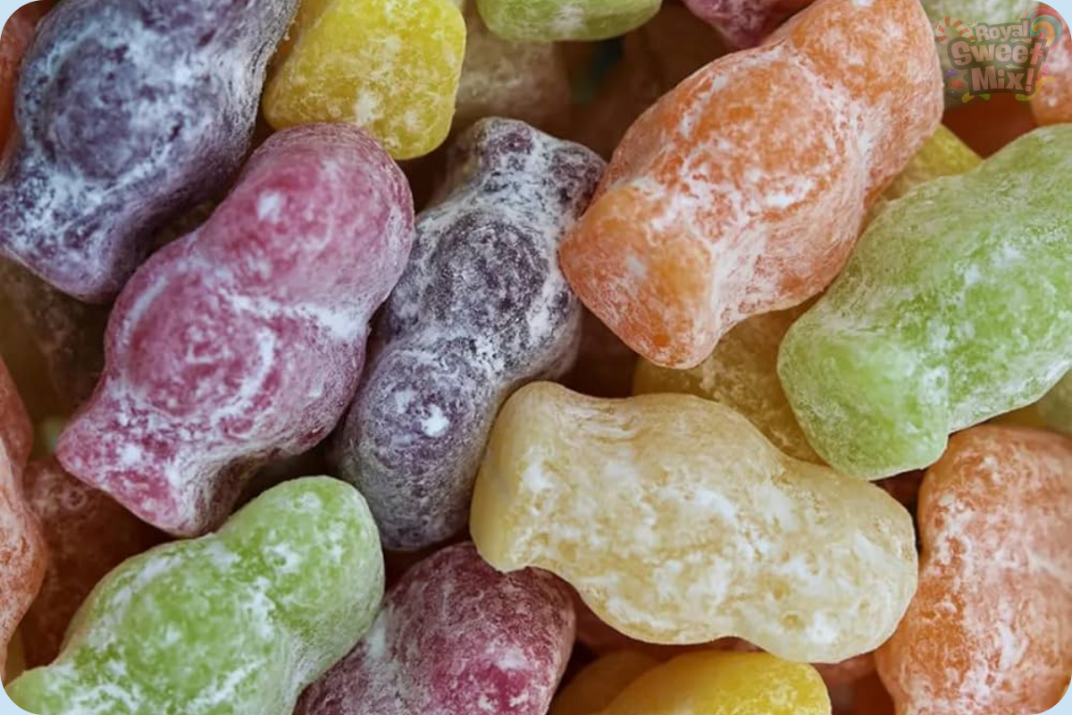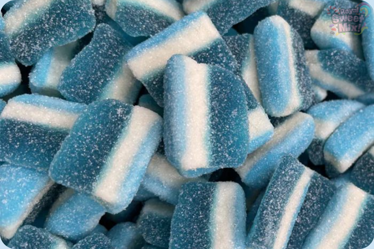 Sugar, Maize Starch, Water, Dextrose, Tartaric Acid, Sodium Hydrogen Carbonate, Flavourings, Colours (Beetroot Red, Curcumin, Indigo Carmine).